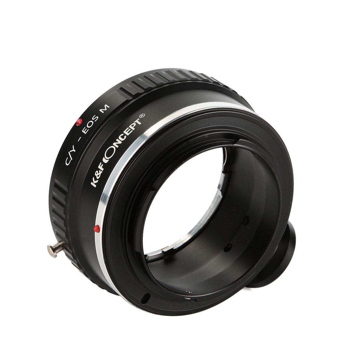 El adaptador de objetivo K&F Concept Contax Yashica a Canon EOS M con soporte para trípode permite utilizar objetivos con montura C/Y en cámaras Canon EOS M. Está fabricado en latón y aluminio resistentes, ofrece una fijación estable y precisa, control totalmente manual, enfoque al infinito e incluye un soporte para trípode para un mejor equilibrio con objetivos más pesados.