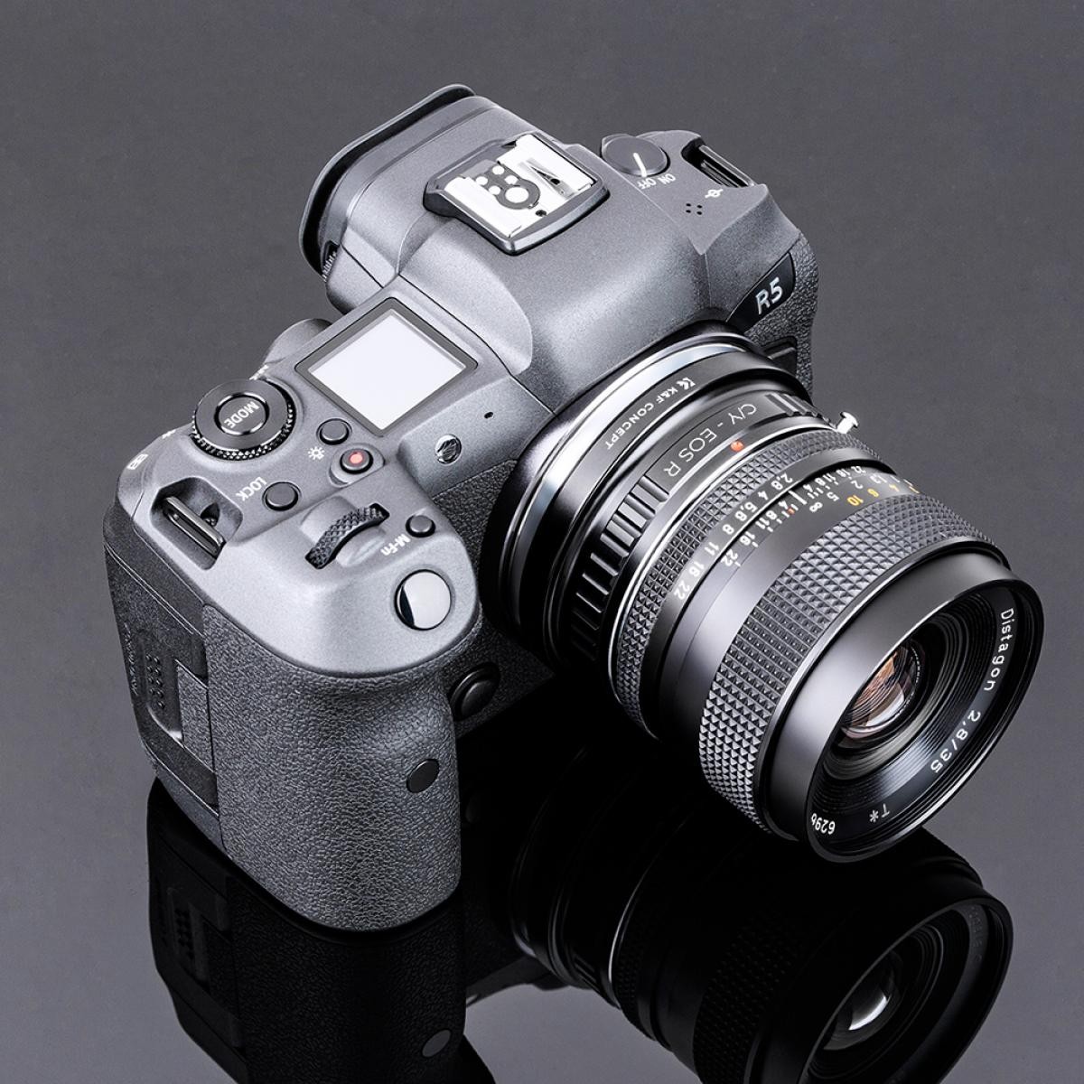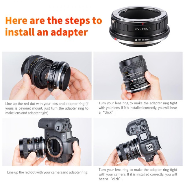 El adaptador de objetivo K&F Contax Yashica para Canon EOS R permite utilizar objetivos con montura Contax/Yashica en las cámaras sin espejo Canon EOS R. Destaca por su resistente estructura de latón y aluminio, su preciso manejo manual y su compatibilidad con el enfoque infinito.