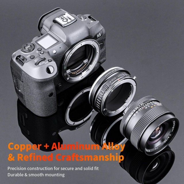 El adaptador K&F Contax Yashica Lenses to Canon EOS R Mount Camera Adapter permite a los fotógrafos acoplar objetivos clásicos Contax/Yashica a las cámaras sin espejo Canon EOS R. Este adaptador está fabricado en latón y aluminio de alta calidad y garantiza una conexión estable, precisa y resistente entre el objetivo y la cámara. Es totalmente manual, permite un control total sobre el enfoque y la apertura, y admite el enfoque al infinito para una fotografía versátil. Ideal para fotógrafos profesionales y creativos que desean utilizar objetivos C/Y antiguos con los modernos sistemas sin espejo de Canon. En el caso de los objetivos de formato medio más pesados, se recomienda utilizar un trípode o un soporte para teleobjetivos a fin de mantener el equilibrio y garantizar una fotografía estable.