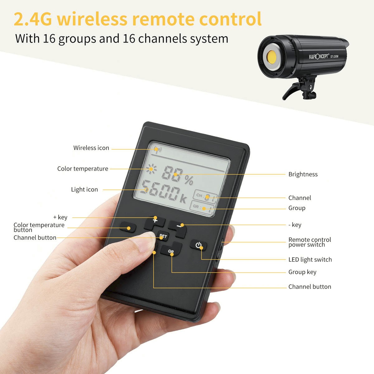 La luz LED para vídeo y fotografía K&F ST-150W Mono es una solución de alto rendimiento para una iluminación continua basada en la avanzada tecnología LED COB de 150 W. Esta luz con luz diurna equilibrada, diseñada para creadores que exigen consistencia y precisión en el color, ofrece una potencia de hasta 14 000 lúmenes con una temperatura de color fija de 5600 K, lo que la hace ideal para entrevistas, fotografía de productos, retratos y producción de vídeo.