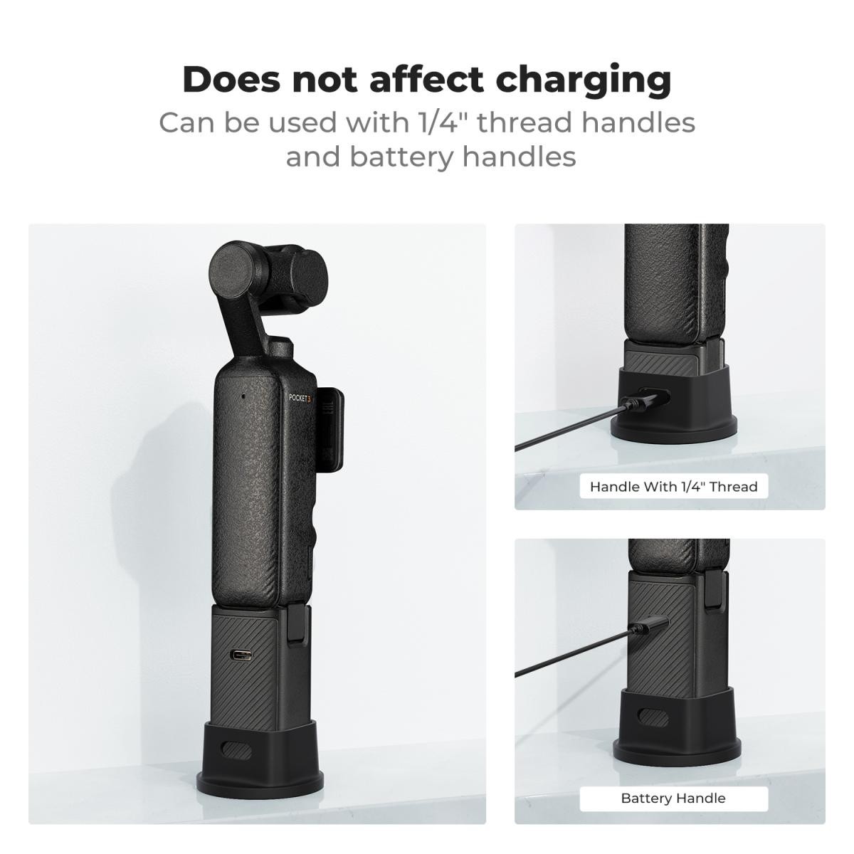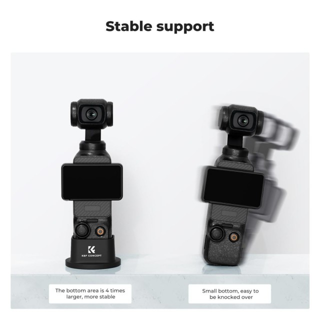 • * [Soporte estable] La base está diseñada para el Pocket3. Su amplia superficie inferior permite una colocación más estable sobre la mesa y evita que se caiga.