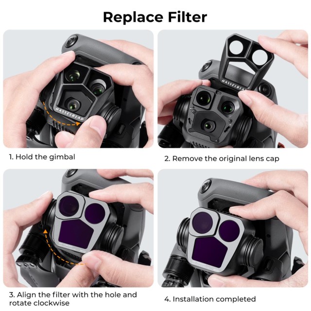• * 【No afecta al cardán】Cada filtro ND pesa solo 5,4 gramos. La tecnología de filtros ultraligeros de K&F Concept garantiza que cada marco de filtro supere rigurosas pruebas sin afectar negativamente al cardán de tu dron.