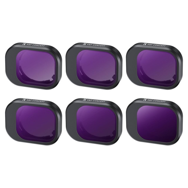 El kit de 6 filtros ND de K&F Concept para DJI incluye los modelos ND4, ND8, ND16, ND32, ND64 y ND1000. Diseñado especialmente para el DJI Mini 4 Pro. Este kit de filtros ND ofrece una reducción de luz de 2 a 10 pasos y cubrirá tus necesidades para disfrutar todo el día, desde días nublados hasta días soleados. Mejora la calidad de tus vídeos e imágenes.