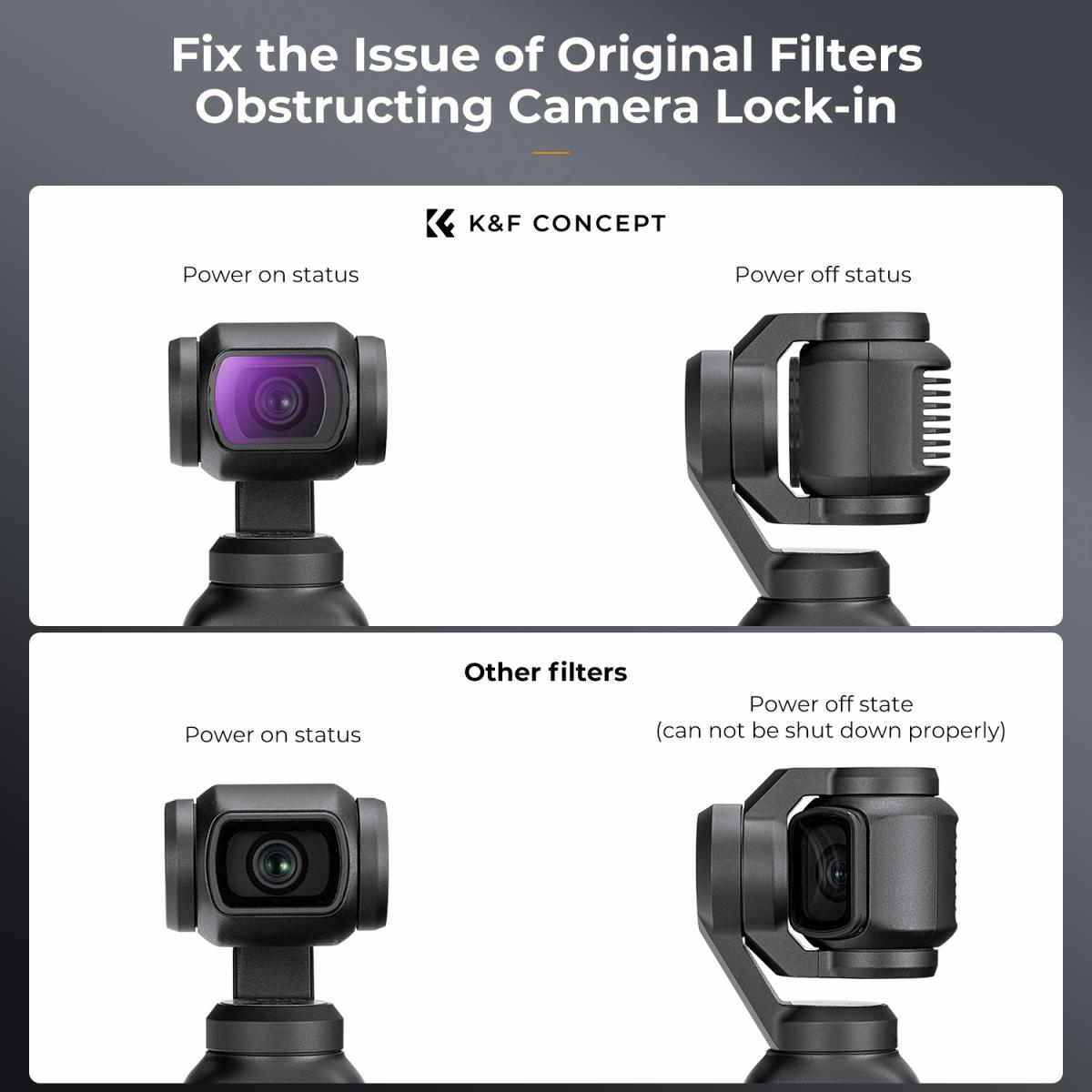 Los filtros ND de K&F Concept para la DJI Osmo Pocket 3 están diseñados para ajustarse a la perfección y ofrecer un aspecto discreto en este modelo de cámara de acción. Estos filtros ND ayudan a controlar la luz en diversas condiciones, especialmente al fotografiar y grabar en exteriores, y proporcionan una mayor calidad en las imágenes y los vídeos profesionales.