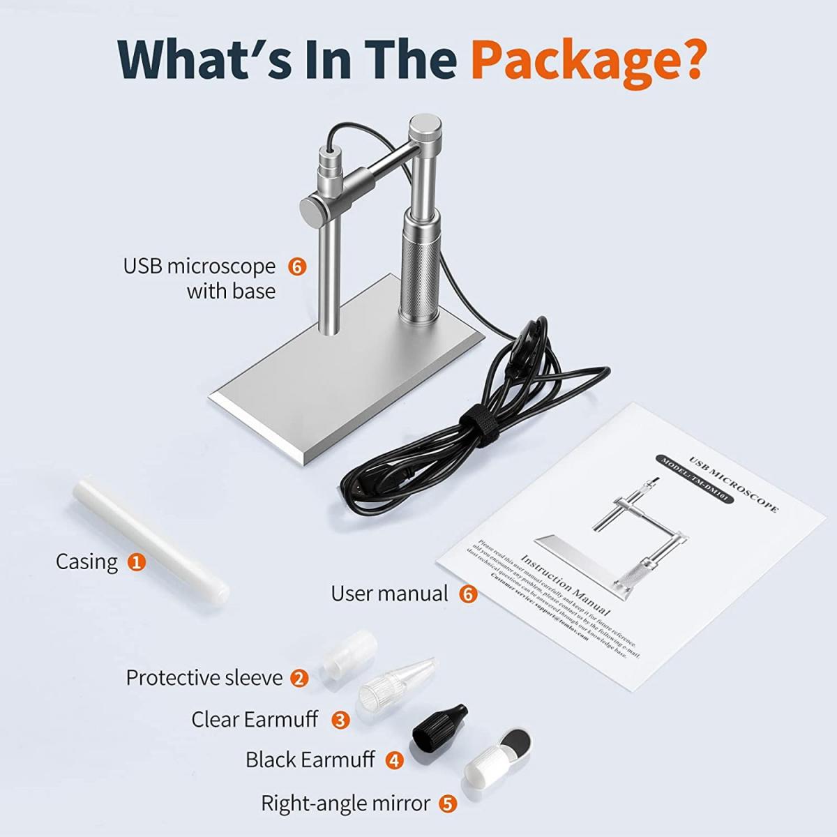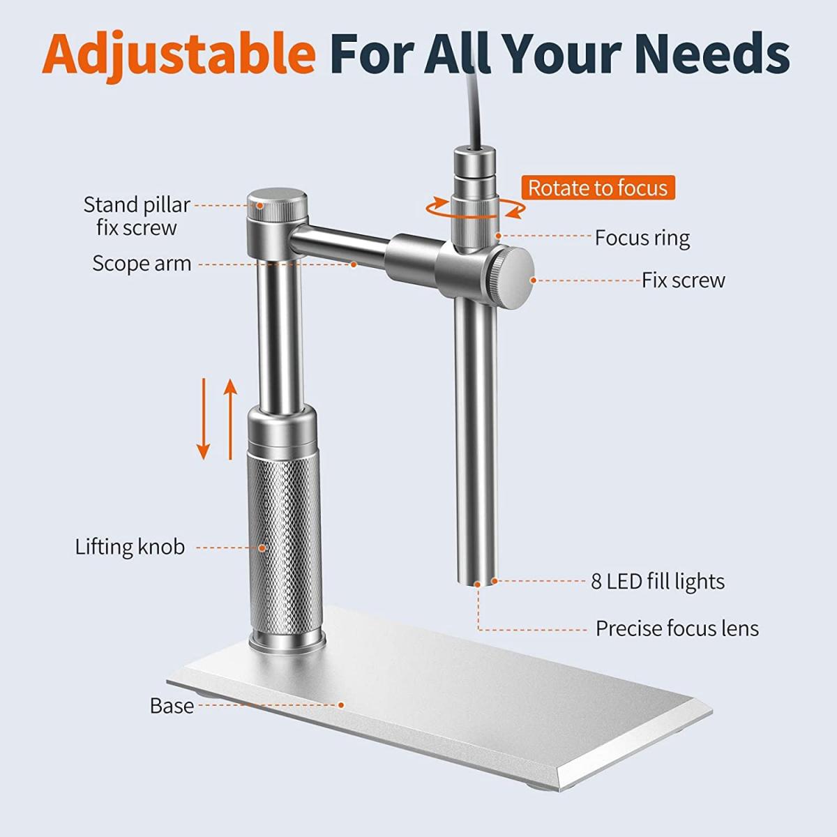* Fabricado íntegramente en aluminio, resistente y duradero: este microscopio USB cuenta con una base, un soporte y una lente de aleación de aluminio, lo que garantiza una larga vida útil y permite realizar microsoldaduras o reparar placas de circuito impreso;