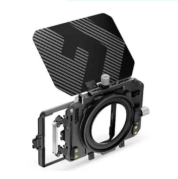 El kit de matte box K&F Concept SKU.2364V1 es un accesorio cinematográfico de alta gama diseñado para proporcionar a los operadores de cámara y cineastas un control total sobre los reflejos en el objetivo, la dispersión de la luz y el uso de filtros. Esta caja mate está diseñada para un uso versátil y es compatible con dos filtros cuadrados estándar de 4 × 5,65″, lo que te permite crear fácilmente efectos visuales impresionantes. Esta caja difusora está fabricada con fibra de carbono y aluminio aeronáutico, materiales ligeros pero resistentes, por lo que puede soportar rodajes exigentes y, al mismo tiempo, es portátil y fácil de montar. El kit incluye varios anillos adaptadores que garantizan una compatibilidad perfecta con diferentes tamaños de objetivos.