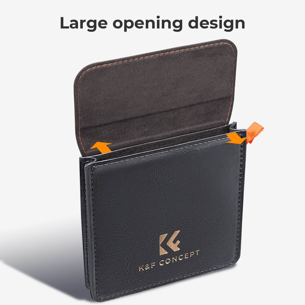 El estuche para filtros de K&F Concept es una solución de almacenamiento compacta y protectora diseñada para guardar de forma segura un filtro redondo para objetivos fotográficos de hasta 82 mm de diámetro, lo que lo mantiene limpio, a salvo y listo para usar.