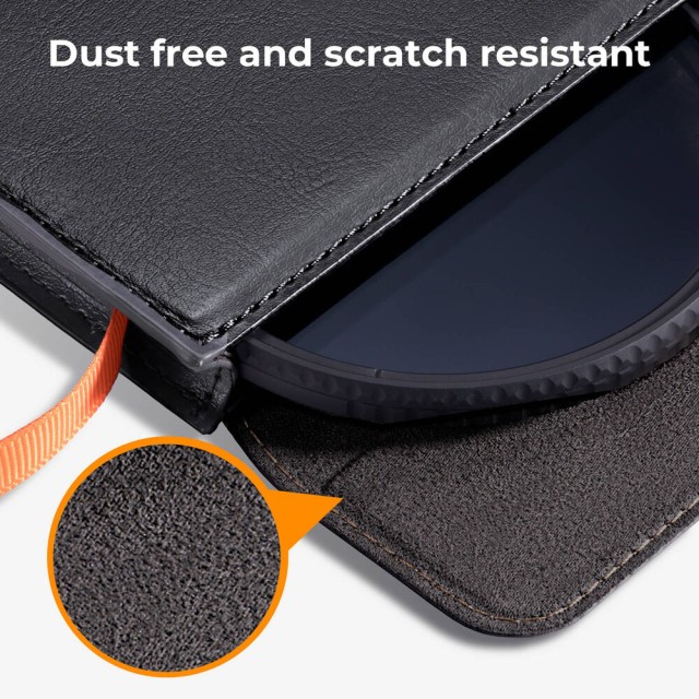Gracias a su diseño delgado y ligero, cabe fácilmente en una bolsa de cámara, una mochila o un bolsillo sin ocupar espacio. El interior protector ayuda a evitar el desgaste de la superficie y garantiza que tu filtro conserve una calidad óptica óptima. Tanto si guardas filtros UV, CPL, ND o de efectos especiales, este estuche ofrece una solución sencilla y eficaz para la protección y organización diarias.