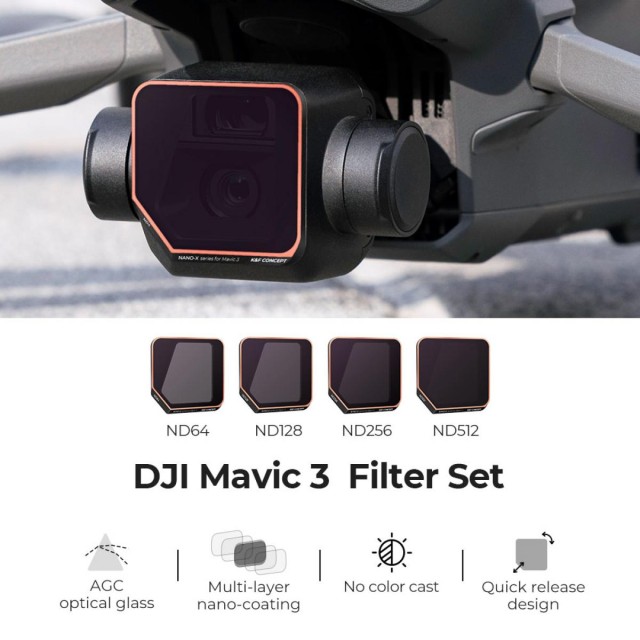 K&F For DJI Mavic 3, 4pcs Filter Sets (ND64+ND128+ND256+ND512)