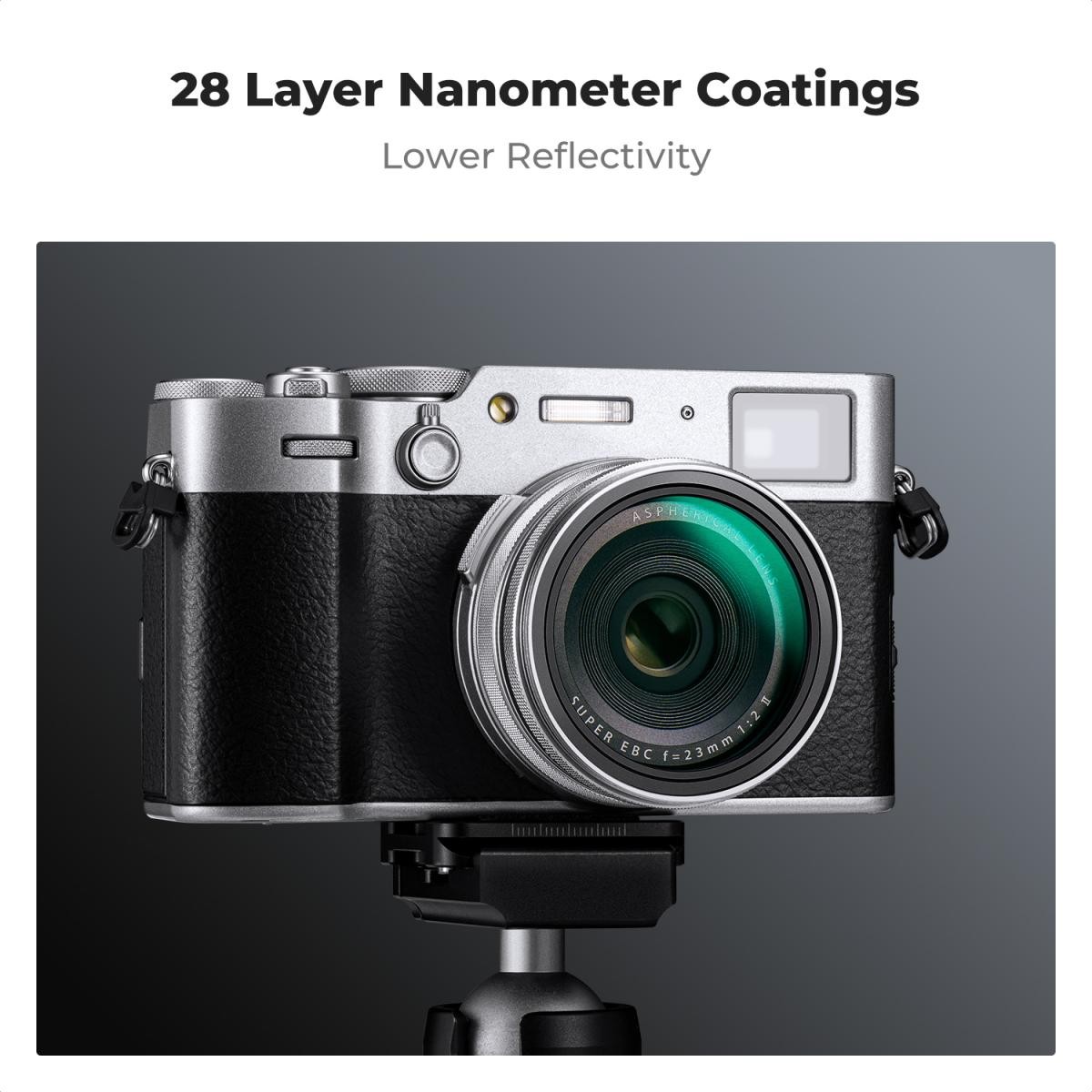 Compatible con las cámaras Fujifilm X100/X100F/X100S/X100T/X100V/X100VI. El filtro UV está fabricado con cristal óptico AGC importado, tiene una transmisión de luz de hasta el 99,6 % y cuenta con 28 capas de revestimiento a ambos lados, resistentes al agua y a los arañazos. Reduce la radiación ultravioleta y ayuda a eliminar el tono azulado de las fotografías. Protege el objetivo del polvo, la suciedad y los arañazos.