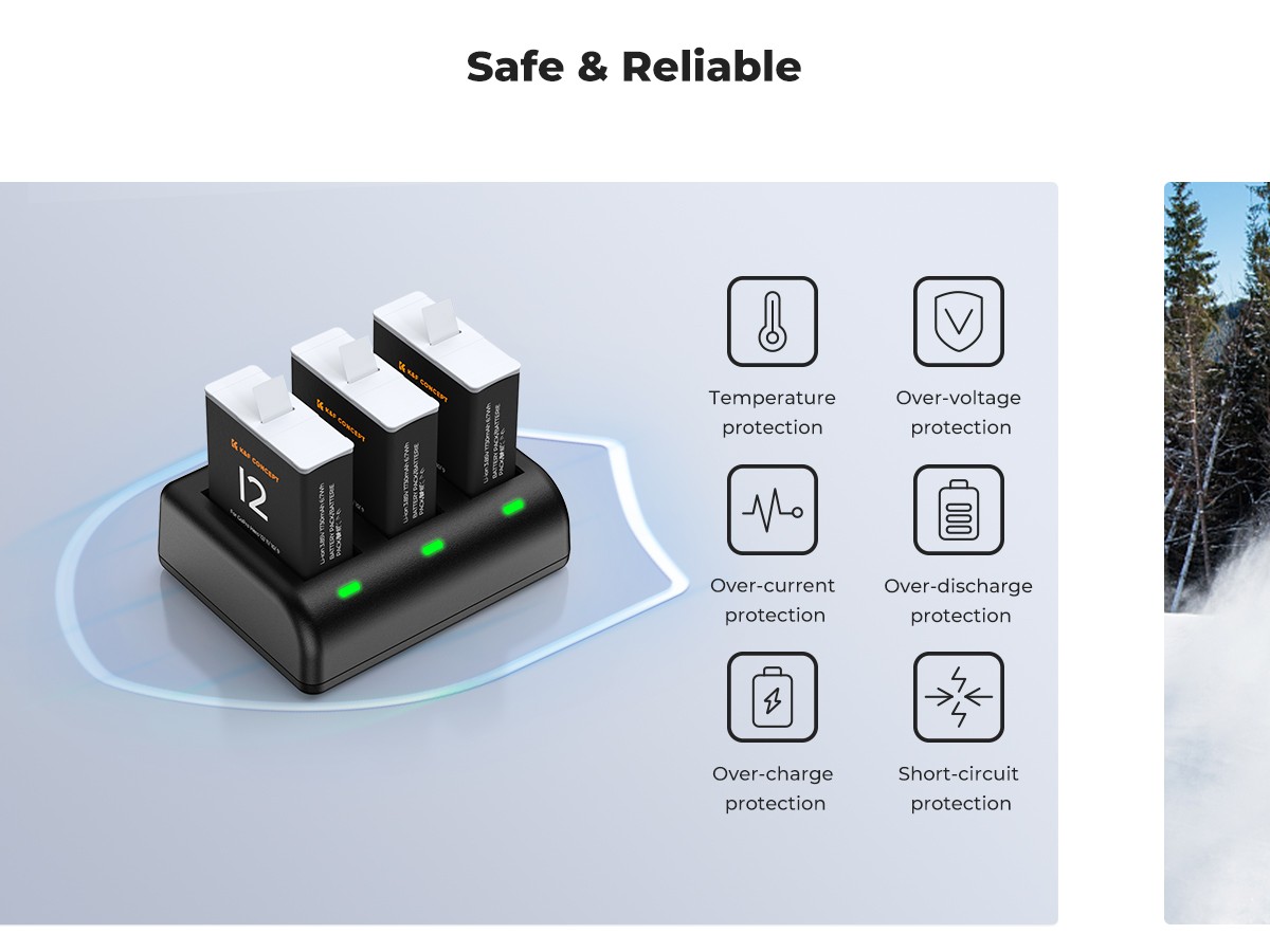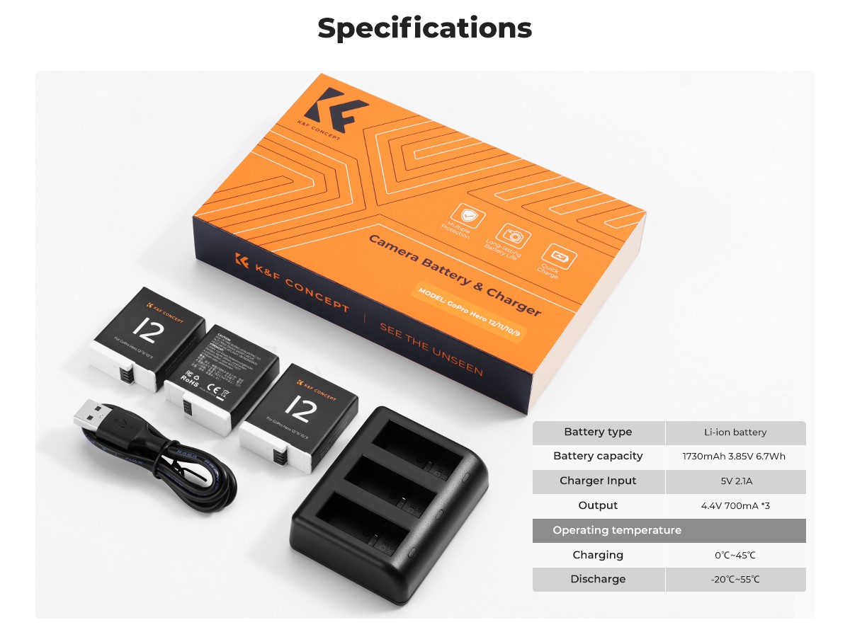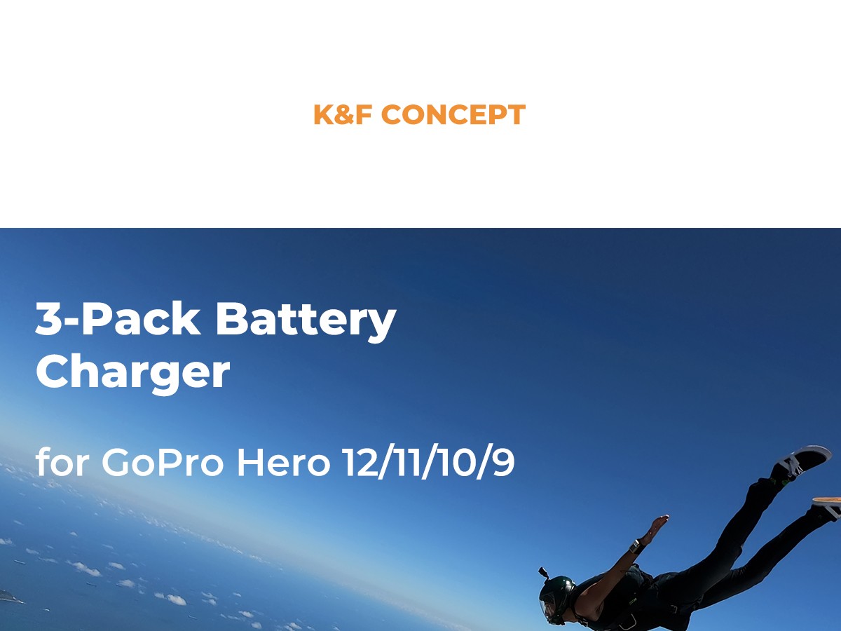 • K&F Concept Hero 12 Battery 3-Pack 1730mAh Enduro Batteries with 3-Slot Charger Compatible with GoPro Hero 12, GoPro Hero 11, GoPro Hero 10, GoPro Hero 9 Black Camera