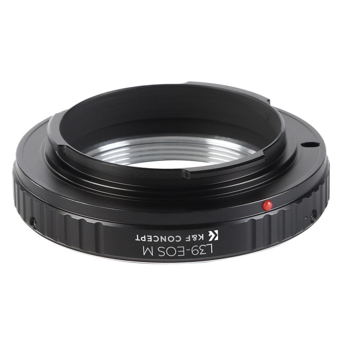 El adaptador de objetivo K&F M39 para Canon EOS M permite utilizar objetivos con montura Leica M39 en las cámaras sin espejo Canon EOS M. Está fabricado en latón y aluminio, ofrece un acoplamiento preciso, un control totalmente manual y permite enfocar al infinito.