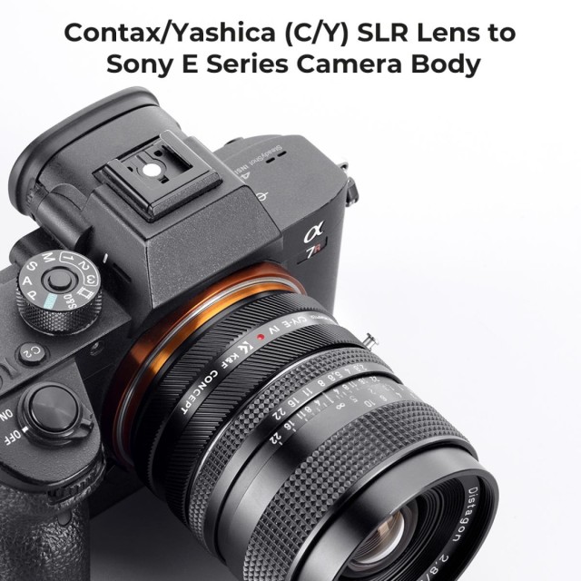 El adaptador K&F Concept C/Y-E para enfoque manual es compatible con los objetivosContax/Yashica (C/Y) para cámaras con montura Sony E.