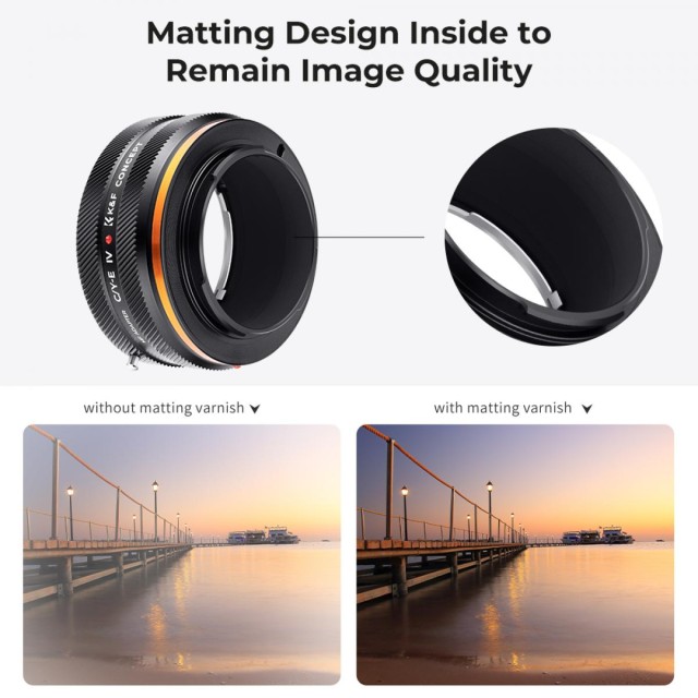 Fabricación de alta precisión: con este adaptador, el objetivo y la cámara se pueden acoplar de forma firme y suave mediante la montura, lo que permite ajustar el enfoque de los objetivos Contax/Yashica (C/Y) en su cámara con montura Sony E.