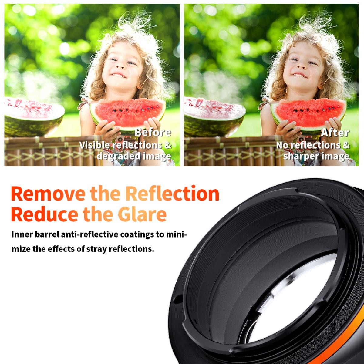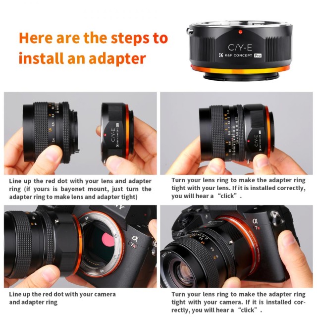 El adaptadorK&F Concept C/Y-NEXpara enfoque manual es compatible conlos objetivos Contax / Yashica (C/Y)para cámaras con montura NEX E-Mount.