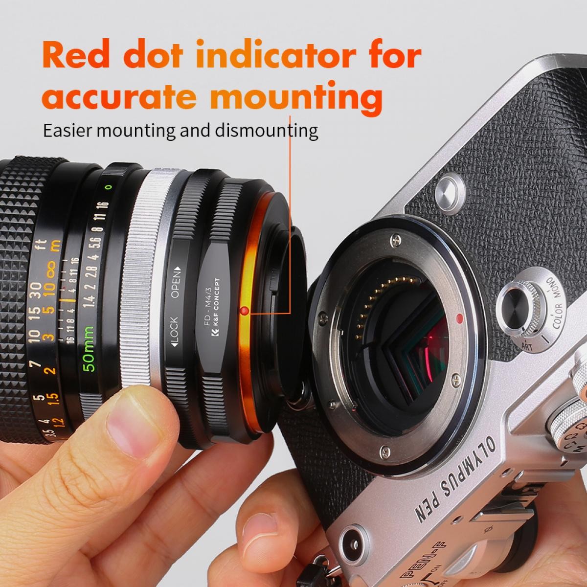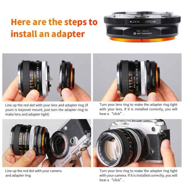 El adaptadorK&F ConceptFD-M4/3para enfoque manual es compatible conlos objetivos Canon FDpara cámaras con montura Micro Four Thirds M4/3.