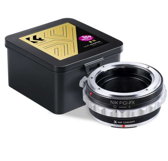El adaptador K&F High Precision Lens Mount (NIK(G)-FX) permite utilizar objetivos Nikon con montura F, incluidos los objetivos de formato DX y tipo G, en cámaras Fujifilm de la serie FX, como la X-T4, la X-Pro1, la X-M1, la X-A1 y la X-E1. Este adaptador está fabricado en latón y aluminio anodizado, lo que garantiza una fijación robusta y precisa. Admite el enfoque al infinito y cuenta con una superficie lisa para facilitar el montaje. Tenga en cuenta que, aunque el adaptador es compatible con los objetivos Nikon G, también se pueden acoplar objetivos Nikon AI, pero el anillo de control de la apertura no funcionará debido a diferencias de diseño. El paquete incluye un soporte para trípode que garantiza la estabilidad al utilizar objetivos más pesados.
