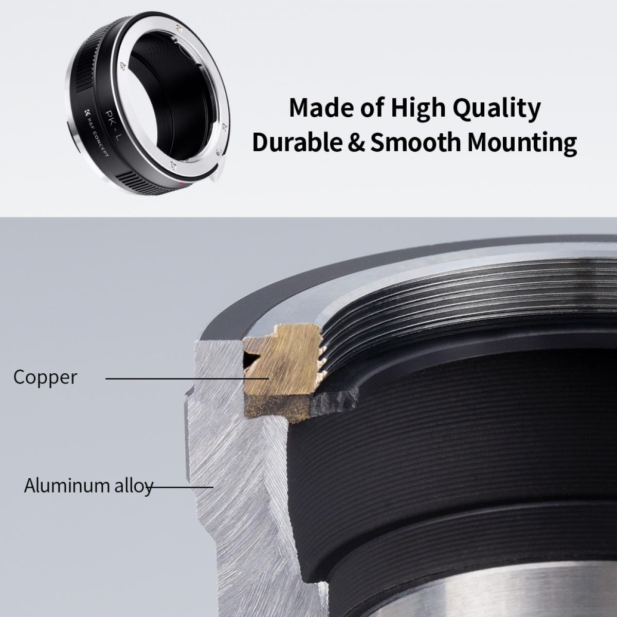 • Conecta un objetivo Pentax K a una cámara sin espejo con montura L.
