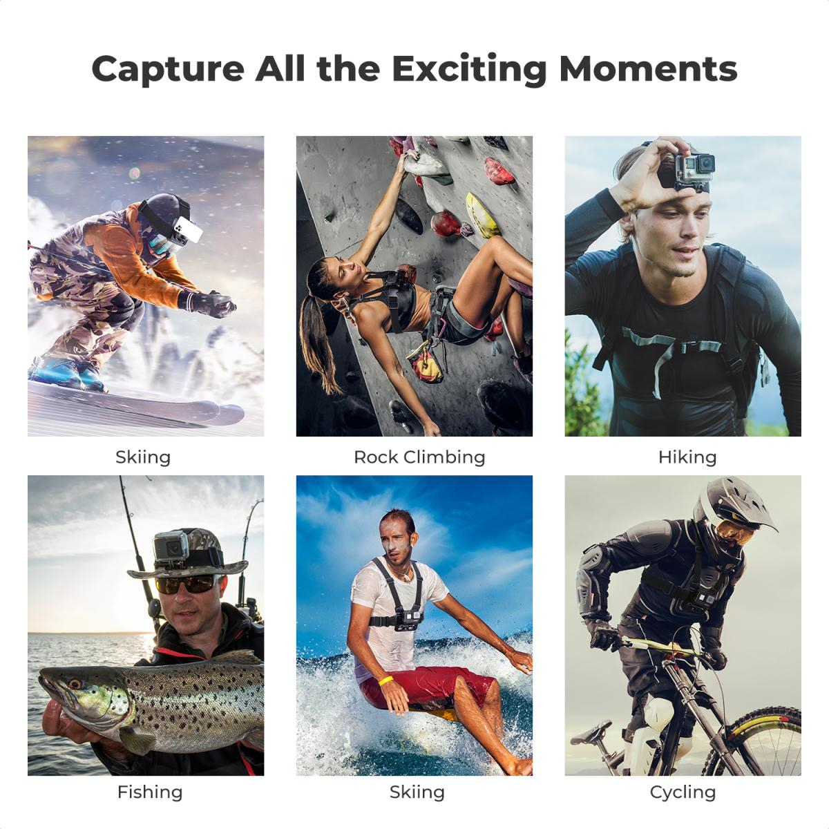 - * 【Ángulo flexible】La correa para la cabeza cuenta con un diseño de rotación de 360 grados; al girarla, puedes encontrar el mejor ángulo para grabar. Se incluye un adaptador para grabación vertical, gracias al cual tanto la diadema como la correa pectoral ofrecen un ángulo de grabación más amplio.