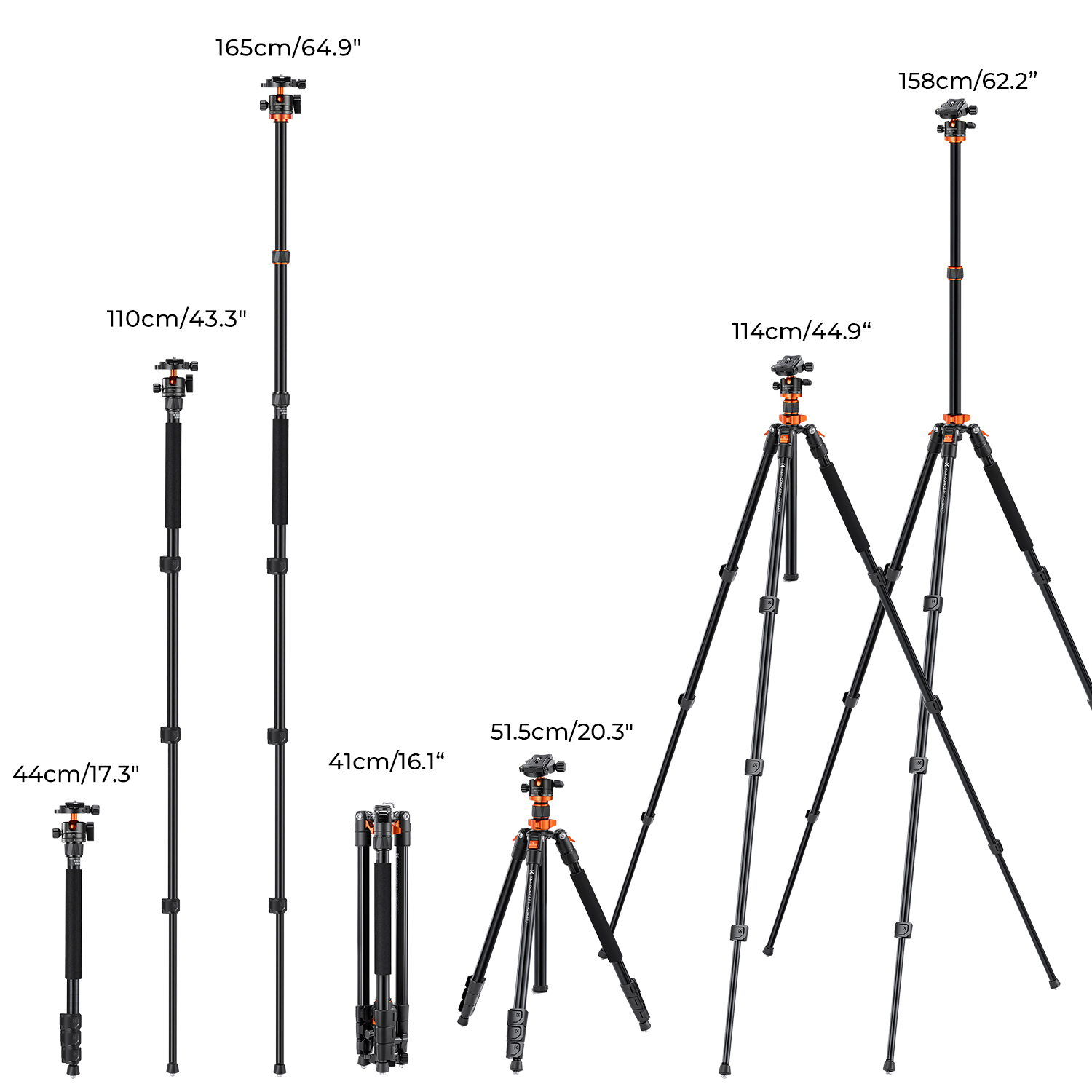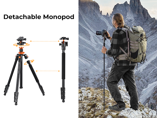 Trípode de aluminio K&F Concept con monopié desmontable y placa de fijación rápida