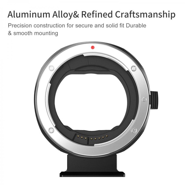 El adaptador de objetivo K&F Concept para cámaras sin espejo Canon EOS RF ofrece un enfoque automático muy rápido, una gran compatibilidad con los objetivos EF/EF-S y contactos electrónicos chapados en oro para una comunicación eficaz. Gracias a la compatibilidad con el control de la apertura en el cuerpo de la cámara y a la protección del objetivo contra las vibraciones, aumenta la comodidad y elimina la distorsión de la imagen causada por las vibraciones en diversas situaciones fotográficas.