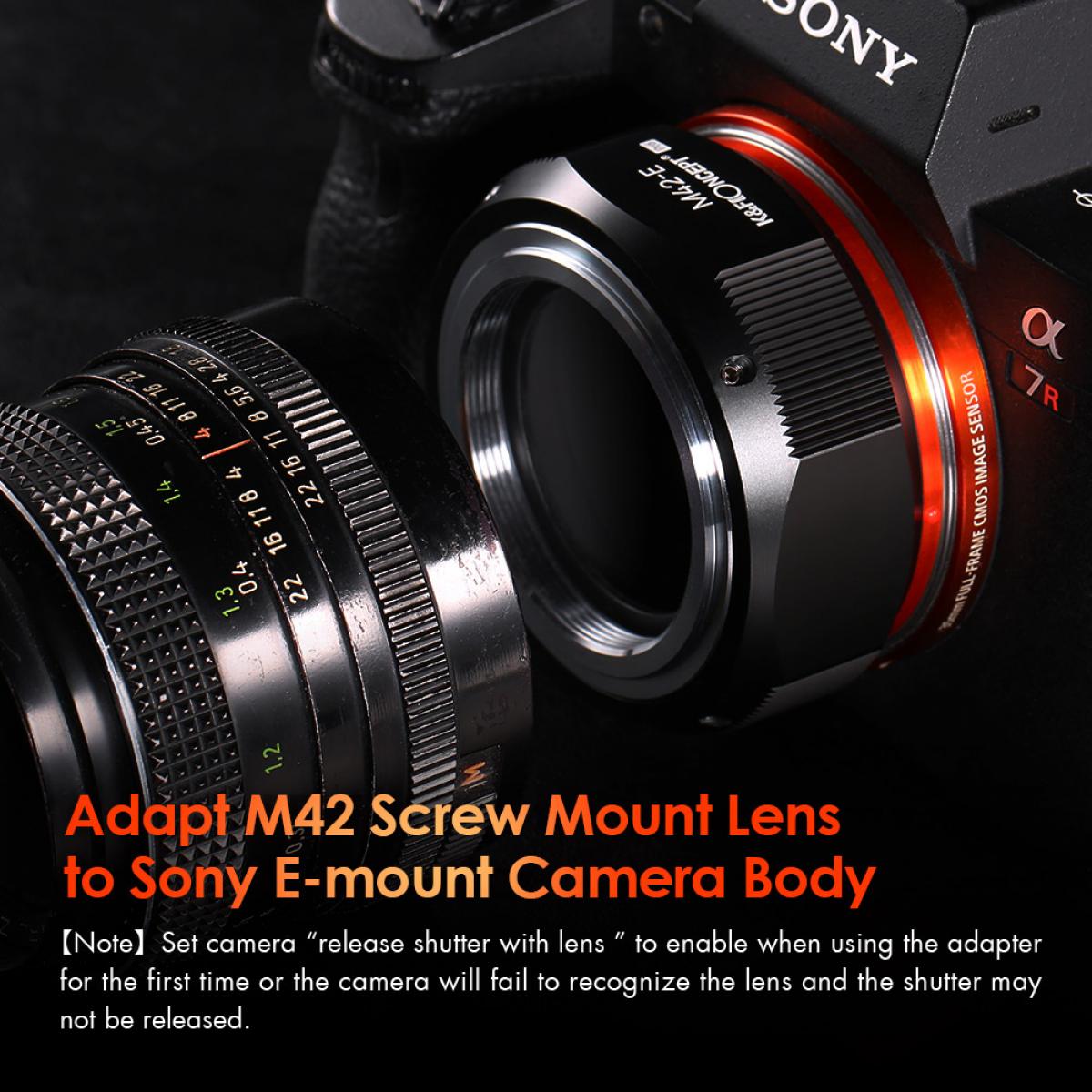 Objetivo M42 para cámaras Sony NEX con montura E, compatible con Sony Alpha NEX-7, NEX-6, NEX-5N, NEX-5, NEX-C3 y NEX-3, con acabado mate. Adaptador de diseño para montar el objetivo