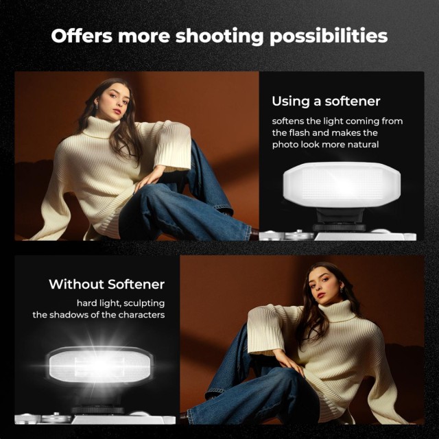 Compatibilidad universal: la zapata estándar de un solo punto es compatible con cámaras Canon, Nikon, Sony, Panasonic, Olympus, Pentax y otras.
