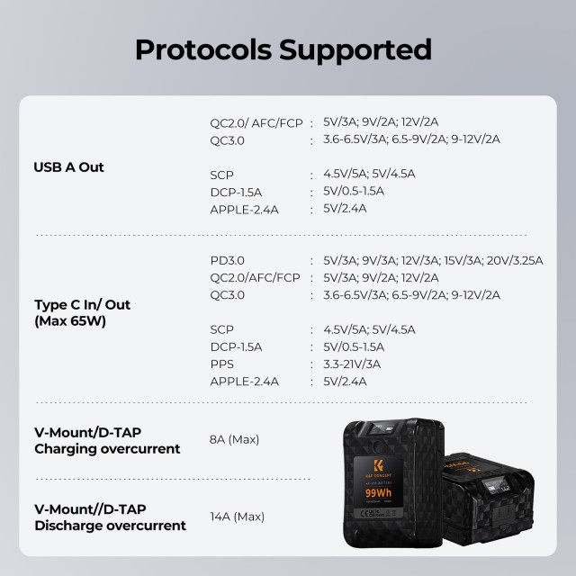 * 【Fácil de transportar】99 Wh es la potencia máxima permitida en aviones y es ideal para la mayoría de las luces con montaje en V; cabe en la palma de la mano y es fácil de transportar
