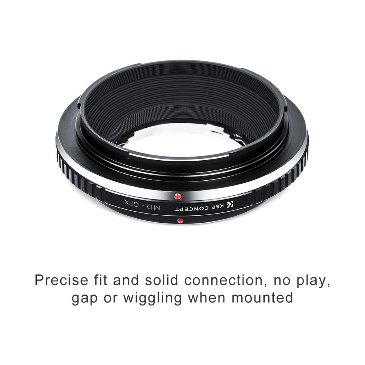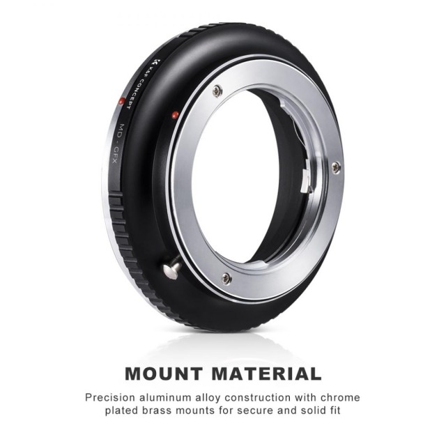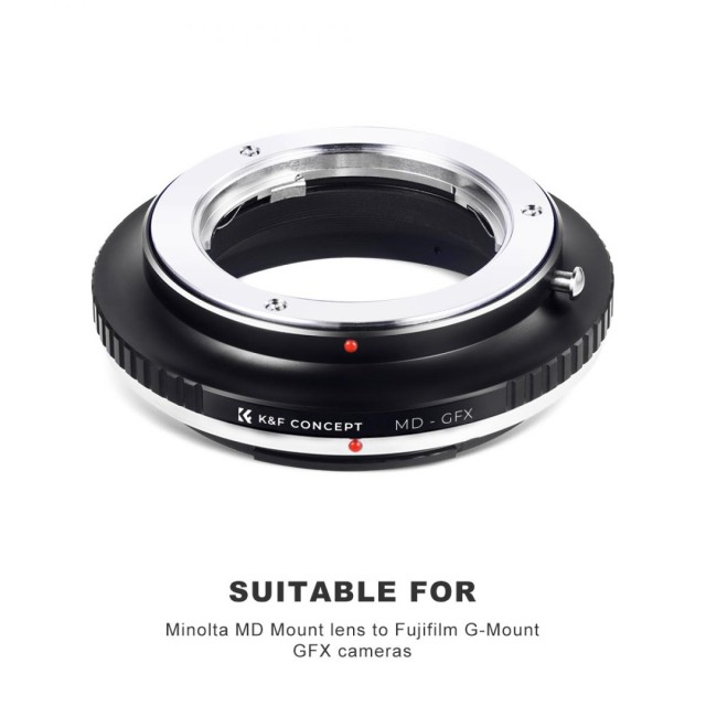 El adaptador de objetivo K&F Minolta MD a Fuji GFX Mount garantiza una conexión precisa y fiable entre los objetivos clásicos Minolta MD y las modernas cámaras de formato medio Fujifilm GFX. Este adaptador, diseñado para fotógrafos a los que les gusta el aspecto vintage de la óptica Minolta, permite un control totalmente manual y admite el enfoque al infinito.