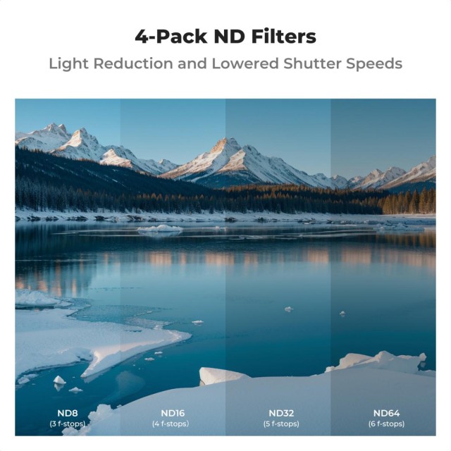 El juego de filtros ND de K&F Concept, diseñado específicamente para el sistema de doble cámara del DJI Air 3S, incluye filtros ND8, ND16, ND32 y ND64 que ayudan a reducir los distintos niveles de luz entre 3 y 6 pasos, controlar con precisión la velocidad de obturación, ajustar correctamente la exposición en diversas condiciones de iluminación y crear tomas fluidas. Este filtro K&F Concept Air 3S está fabricado con cristal óptico AGC de primera calidad, con 28 capas nanométricas multifuncionales en ambos lados que ayudan a capturar colores vivos y obtener imágenes impresionantes; además, las capas protegen los filtros contra el desgaste y los arañazos, el polvo y la suciedad, y repelen el agua.