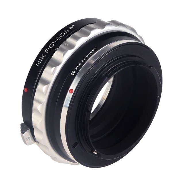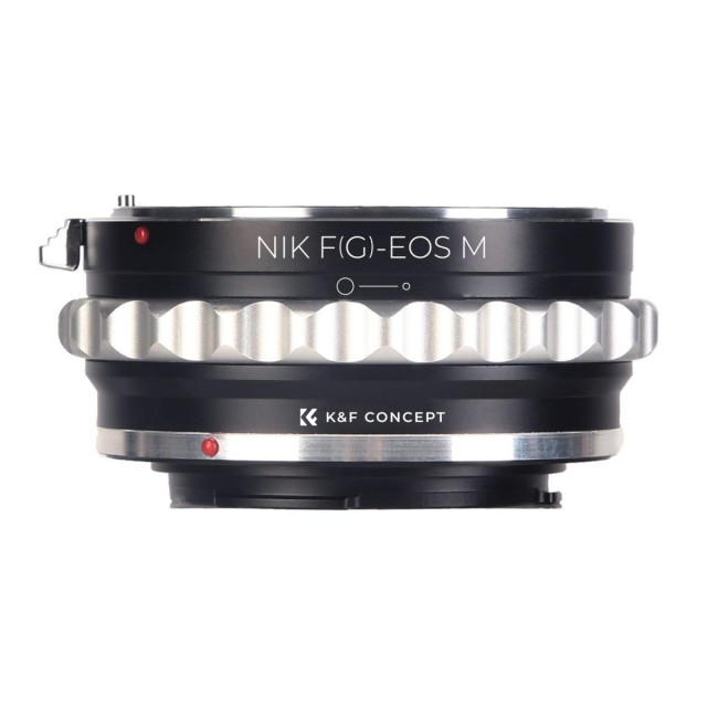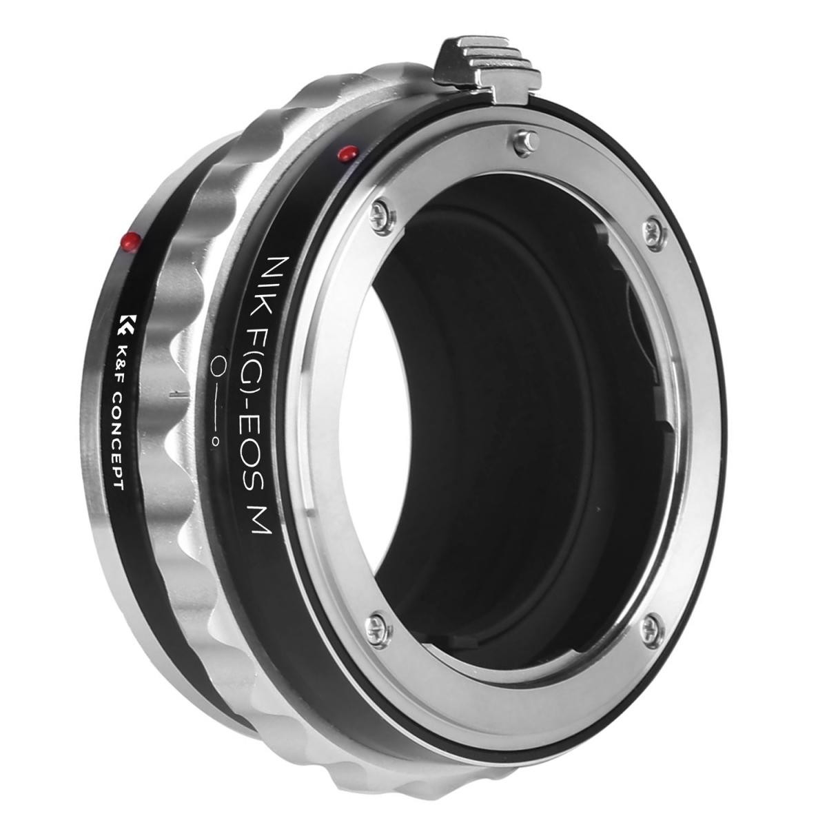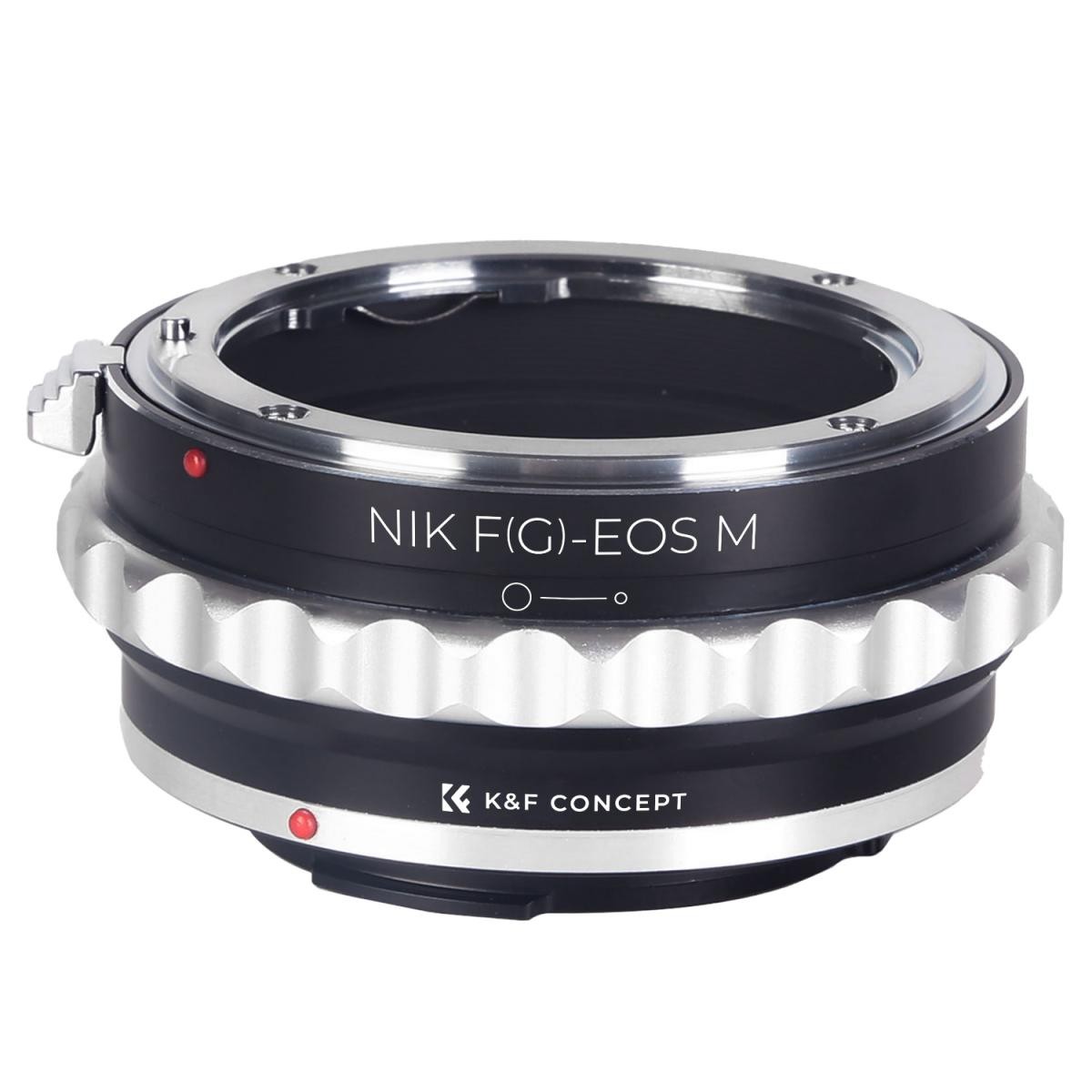 El adaptador K&F Concept Nikon G/F/AI/AIS/D a Canon EOS M permite utilizar objetivos Nikon con montura F en cámaras sin espejo Canon EOS M. Está fabricado en latón y aluminio resistentes y ofrece un acoplamiento preciso y estable con control totalmente manual y enfoque infinito, lo que lo convierte en una herramienta excelente para los fotógrafos creativos.