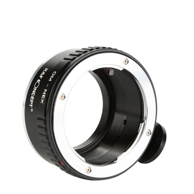 El adaptador de objetivo K&F de Olympus OM a Sony E-Mount con soporte para trípode permite utilizar objetivos Olympus OM Zuiko en cámaras Sony E NEX/Alpha. Está fabricado en latón y aluminio resistentes, permite el enfoque manual y el enfoque al infinito, y ofrece una fijación estable gracias al soporte para trípode integrado, ideal para objetivos más pesados.
