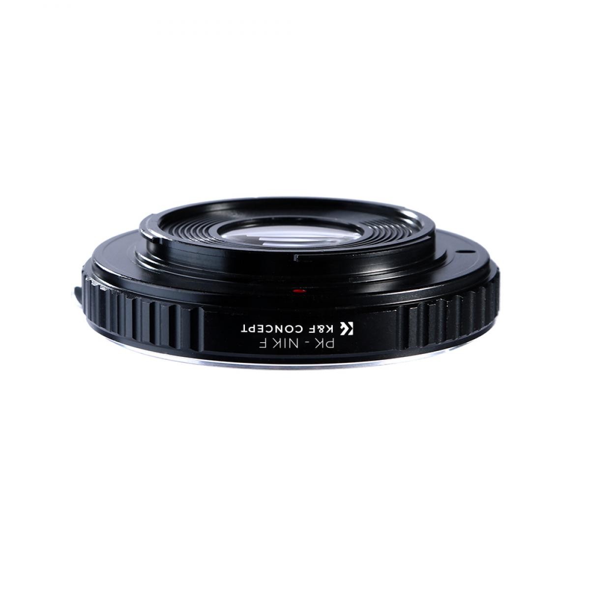 El adaptador de objetivo K&F de Pentax K a Nikon con lente óptica permite utilizar objetivos con montura Pentax K en cámaras réflex digitales Nikon. Está fabricado en latón y aluminio de alta precisión, ofrece un control totalmente manual y cuenta con una lente óptica integrada para enfocar al infinito.