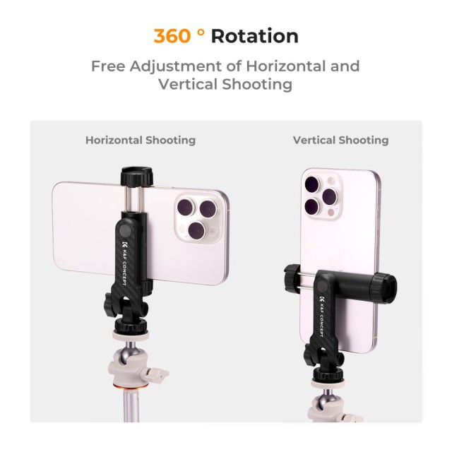 El soporte para el teléfono móvil está equipado con una zapata doble en la que se pueden instalar fácilmente diversos accesorios fotográficos, como micrófonos, luces de relleno, etc., para conseguir mejores resultados fotográficos.