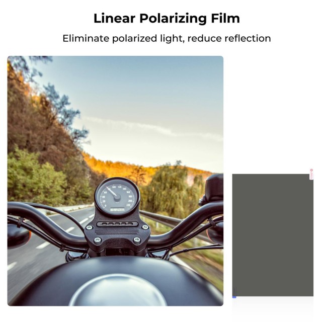 La lámina polarizadora K&F Concept (300 × 200 mm) es una lámina polarizadora lineal profesional con una eficacia de polarización extraordinariamente alta, diseñada para reducir los reflejos en la pantalla, mejorar la visualización y realizar experimentos ópticos. El paquete incluye herramientas de instalación para una aplicación fácil y sin burbujas.