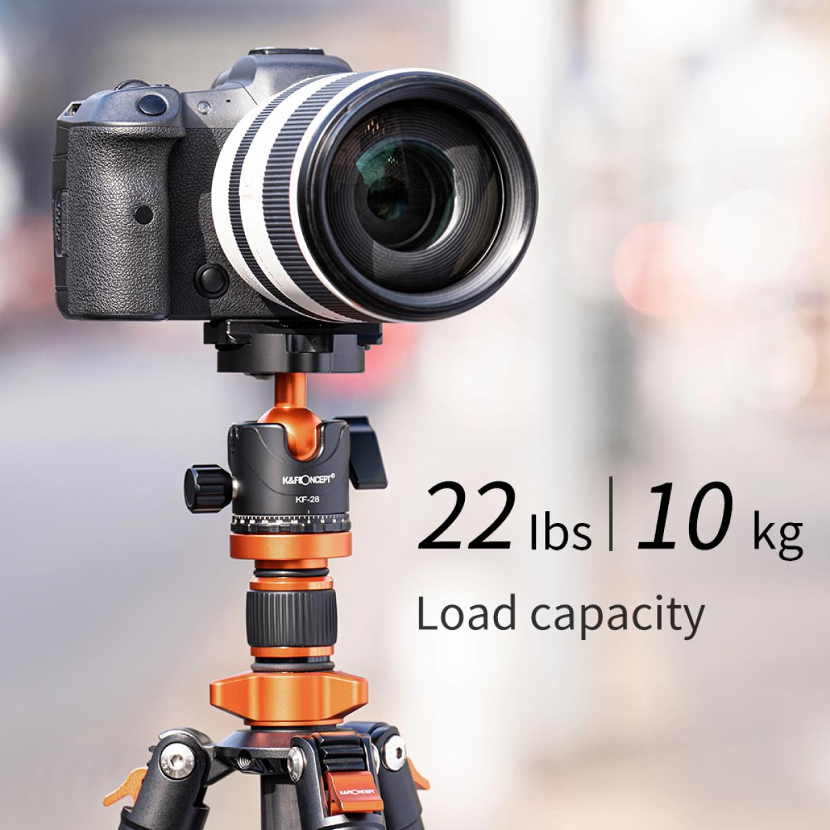 El K&F D254C1+BH-28L es un trípode de viaje compacto de fibra de carbono con estructura plegable, giro de 180°, monopié desmontable y capacidad para fotografiar en ángulo bajo, ideal para fotógrafos que viajan.