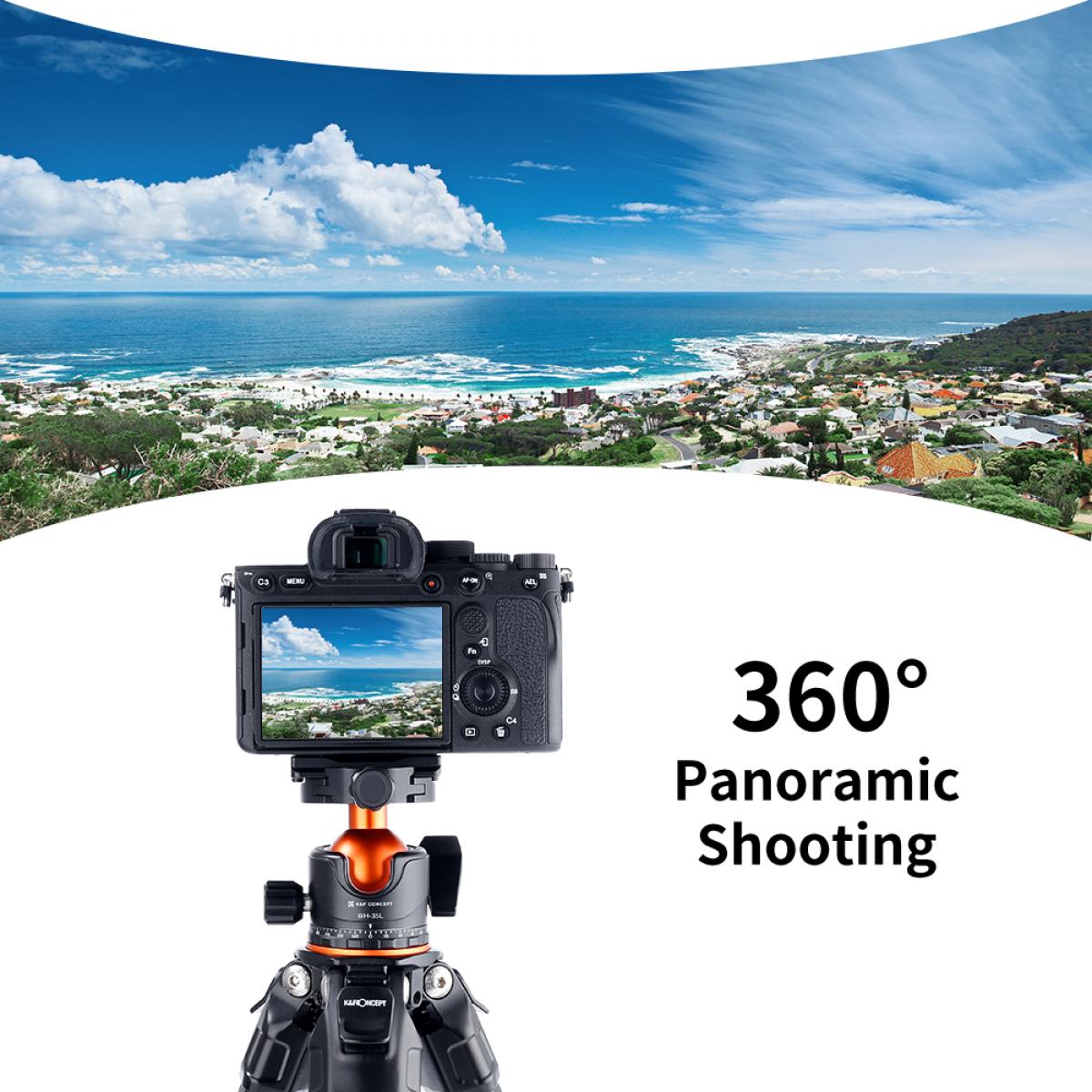 Rótula profesional de trípode de 35 mm de metal de K&F Concept con una capacidad de carga de 15 kg/33 libras. Rótula panorámica giratoria de 360 grados con placa de fijación rápida de 1/4 pulgadas. Serie K&F Concept-35