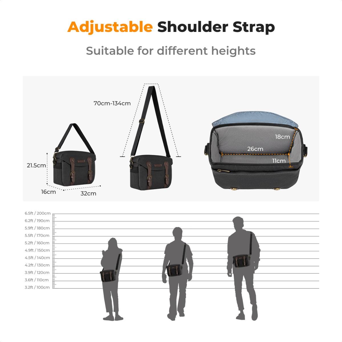 • * 【Elegante bolsa de hombro para cámara】La correa de hombro acolchada, desmontable y ajustable, con un rango de 27,5 a un máximo de 52,7 pulgadas, se puede ajustar según tus preferencias personales. Nuestras bolsas de hombro para cámaras son ideales para viajar y ofrecen funciones prácticas para fotógrafos y aficionados a la fotografía. Si tiene alguna pregunta sobre el producto, no dude en ponerse en contacto con nosotros.