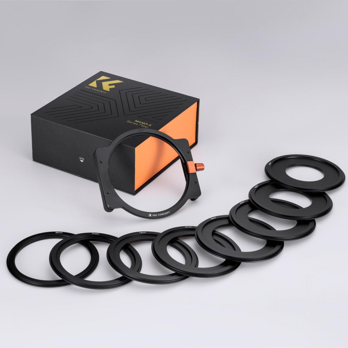 Disfruta de una fotografía precisa y de alta calidad con nuestro portafiltros de 100 mm, cuidadosamente fabricado en aluminio aeronáutico mediante mecanizado CNC integrado y acabado con un resistente recubrimiento de óxido negro mate. Todas las tuercas del portafiltros están fabricadas en cobre y recubiertas de níquel negro para aumentar su durabilidad y, al mismo tiempo, minimizar el impacto de la luz difusa en tus fotografías. El kit incluye 8 anillos adaptadores (49/52/58/62/67/72/77/82 mm) para un ajuste perfecto a tus objetivos. El soporte de aluminio de 100 mm cuenta con una estructura ligera que pesa aproximadamente 77 g y un marco delgado de unos 9 mm de grosor, por lo que es ideal para objetivos gran angulares con una distancia focal superior a 18 mm. Su conexión frontal al objetivo de la cámara se complementa con una estructura general en forma de arco, equipada con prácticos clips en los laterales salientes y una combinación de botones y deslizadores para una fijación segura.