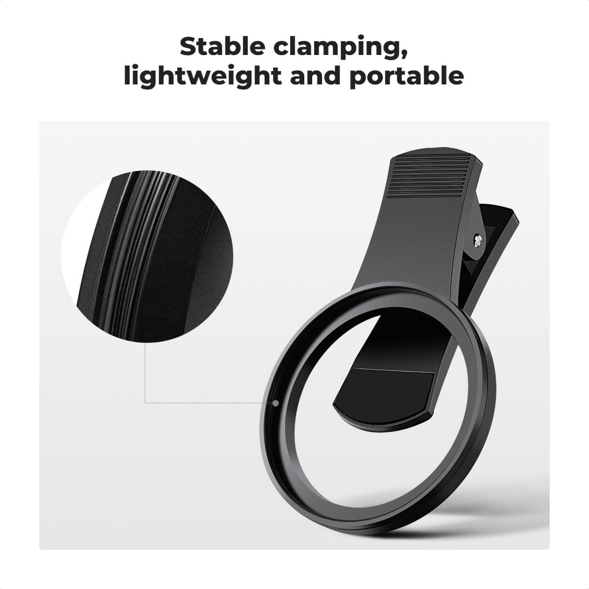 - * 【Amplia compatibilidad】El clip se puede acoplar a la mayoría de los teléfonos inteligentes y permite tomar fotografías como con una cámara réflex profesional. El filtro VND de 52 mm también es compatible con cámaras réflex digitales con rosca de ø 52 mm.
