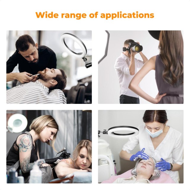 • * 【Compatibilidad versátil】Este brazo está equipado con un adaptador estándar de tornillos de 1/4" a 3/8" y se puede conectar fácilmente a diversos equipos de estudio ligeros, incluyendo cabezales de cámara, luces auxiliares y micrófonos. Gracias a su amplia compatibilidad, es ideal para su uso en peluquerías, salones de tatuajes, salones de belleza, estudios de música, estudios fotográficos y retransmisiones en directo.