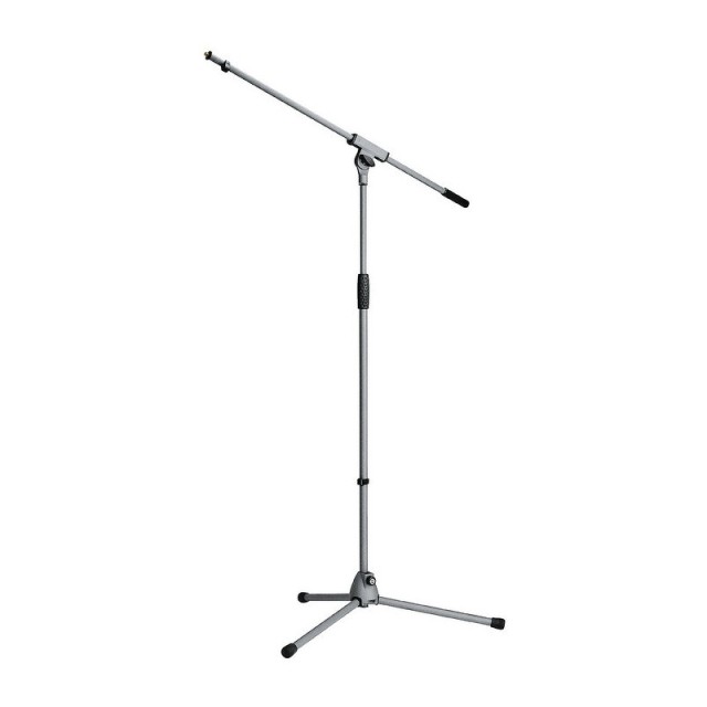 Soporte telescópico para micrófono con brazo deslizante. Altura del soporte: 925/1630 mm. Longitud del brazo deslizante: 805 mm. Atractivo diseño «Soft-Touch» (acabado en pintura en polvo gris).