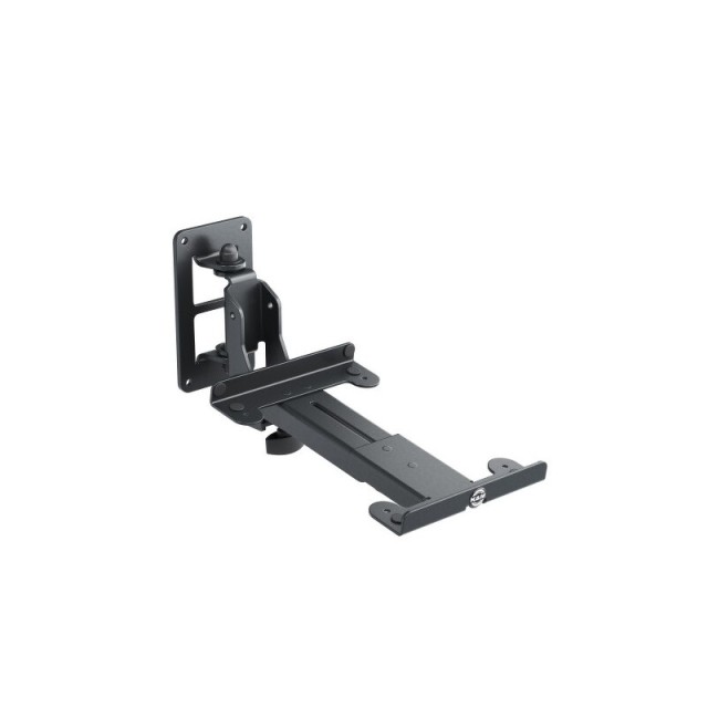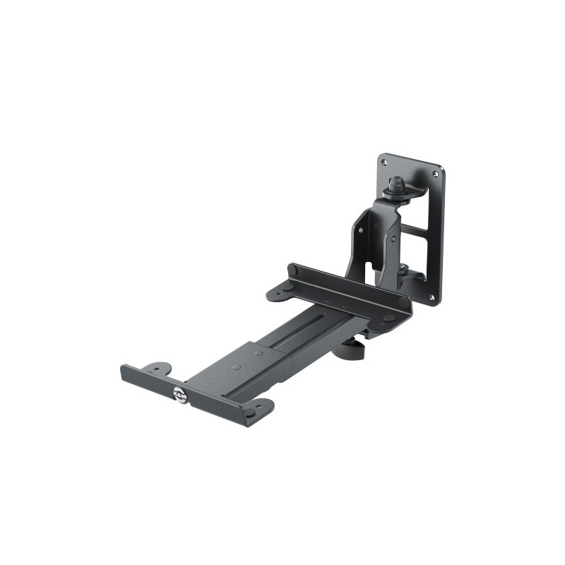 Soporte de pared de acero para altavoces modelo M con brazo ajustable. Capacidad de carga de hasta 15 kg. El brazo se puede girar hacia ambos lados hasta 54° e inclinar de forma continua hasta -17°. El ancho es de 170 mm y la profundidad oscila entre 150 y 220 mm. Las almohadillas de goma autoadhesivas protegen la superficie del altavoz y evitan el ruido causado por las vibraciones. Ajuste rápido. Estructura metálica robusta con pintura en polvo resistente. Se fabrica en color negro.