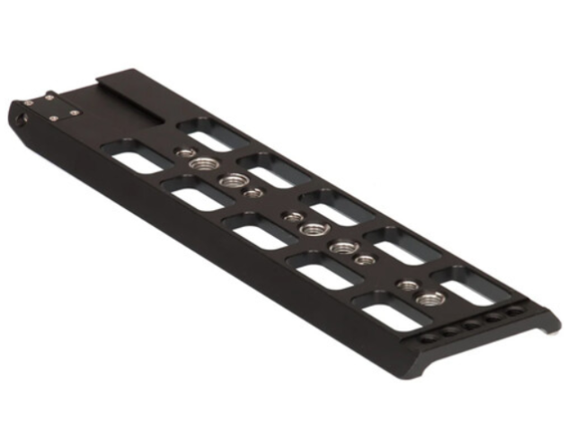La placa deslizante Kinefinity Movcam (A601-917-01) es una placa base profesional de 10 pulgadas con sistema de fijación rápida, diseñada específicamente para la jaula completa KineKIT-Edge en las cámaras MAVO Edge 8K y 6K. Está fabricada en aluminio ligero mediante mecanizado CNC con recortes estratégicos, pesa solo 270 g, pero proporciona un soporte firme para objetivos cinematográficos pesados y accesorios. Quince puntos de fijación roscados (5× 3/8"-16 estándar ARRI + 10× 1/4"-20) ofrecen la máxima flexibilidad para montar abrazaderas de barra, cuñas VCT, placas de batería o placas Cheese. El acabado negro anodizado duro combina con la estética de Kinefinity y resiste los arañazos durante rodajes intensivos. Imprescindible para equilibrar rápidamente al cambiar de objetivo, añadir cajas difusoras o alternar entre configuraciones para uso manual, con brazo y con gimbal.