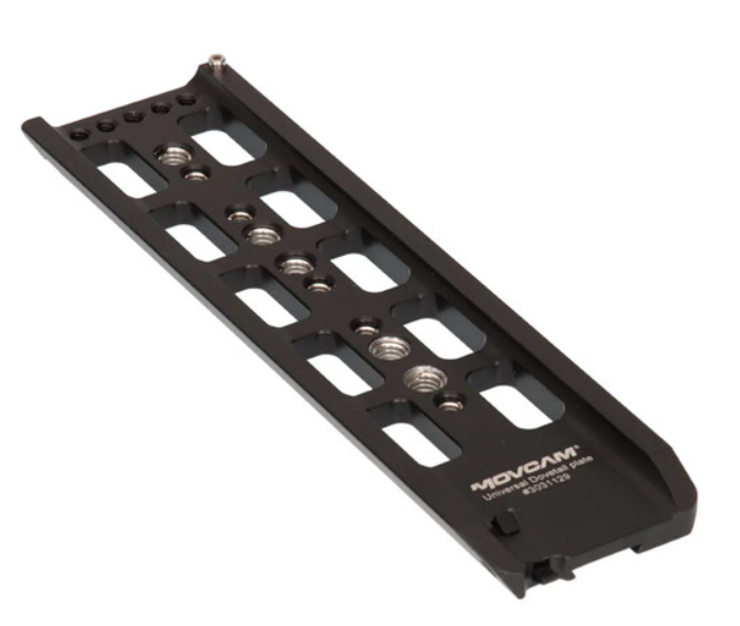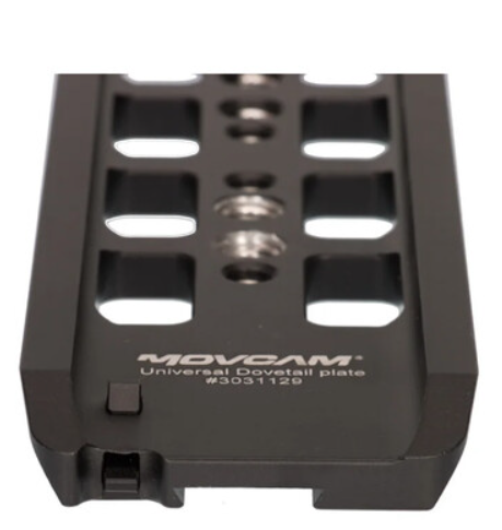 La placa deslizante Kinefinity Movcam (A601-917-01) es una placa base metálica ligera de 10" para las jaulas KineKIT-Edge en la MAVO Edge 8K/6K. Está equipada con 5 roscas de 3/8"-16 y 10 de 1/4"-20, un pasador de seguridad fijo en la parte delantera y un botón de liberación en la parte trasera, lo que la hace ideal para equilibrar rápidamente el gimbal o el trípode.