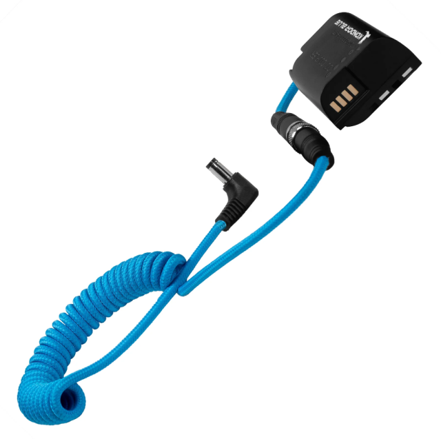 Alimenta determinadas cámaras Panasonic, como la Lumix GH7, GH6, S5II y S5IIX, mediante la placa de batería Kondor Blue V-mount o Gold mount con este cable para batería simulada de 2,1 mm CC a DMW-BLK22. El cable enrollado se extiende de 40 a 91 cm y está equipado con un conector DC de 2,1 mm en un extremo y un simulador de batería DMW-BLK22 en el otro.