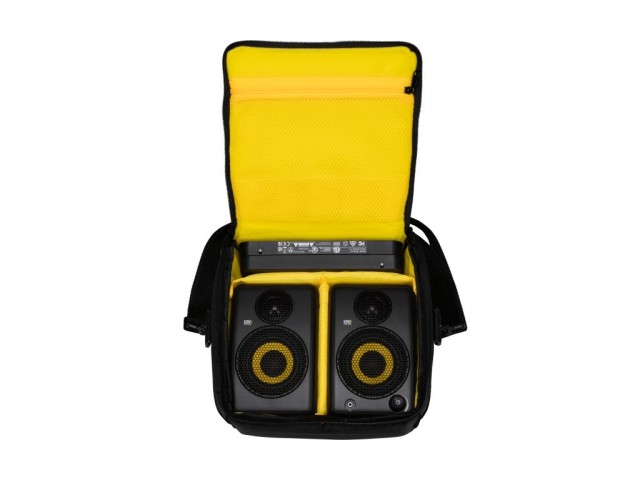 Los KRK GoAux 3 son monitores activos portátiles de campo cercano en una configuración de 3 + 1" con una potencia total de 60 W y conexión Bluetooth. Se suministran con una bolsa de transporte y soportes ajustables.