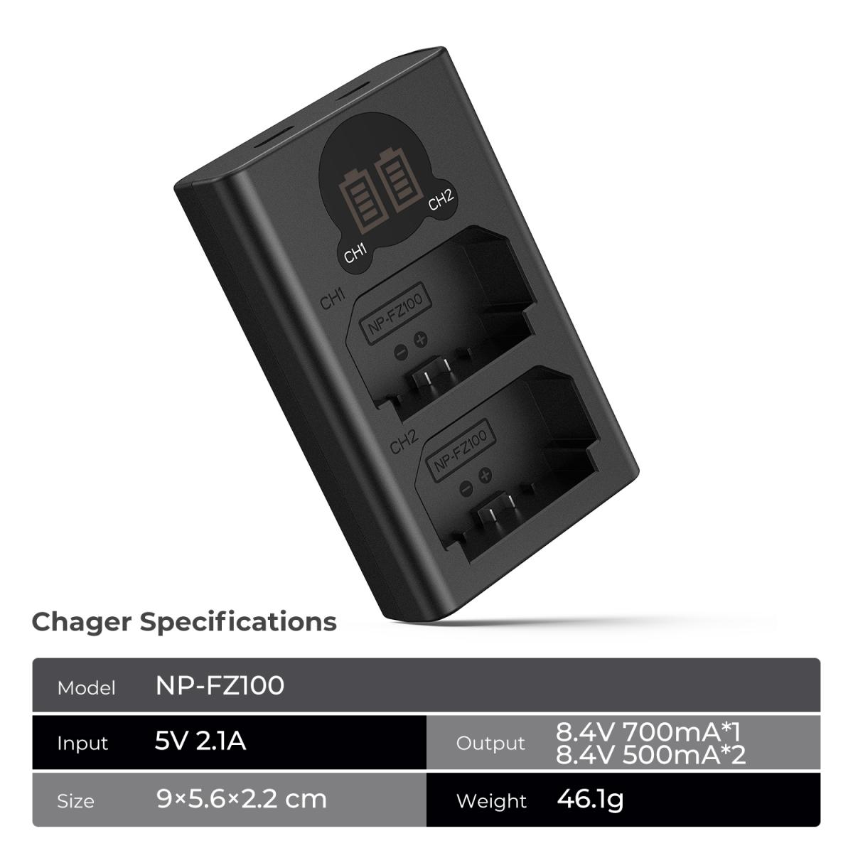 - * Cargador de baterías. Apto para baterías NP-FZ100 de cámaras Sony, como la Alpha A7 III, A7R III (A7R3), A9, A6600, A7R IV, Alpha A9 II, etc.