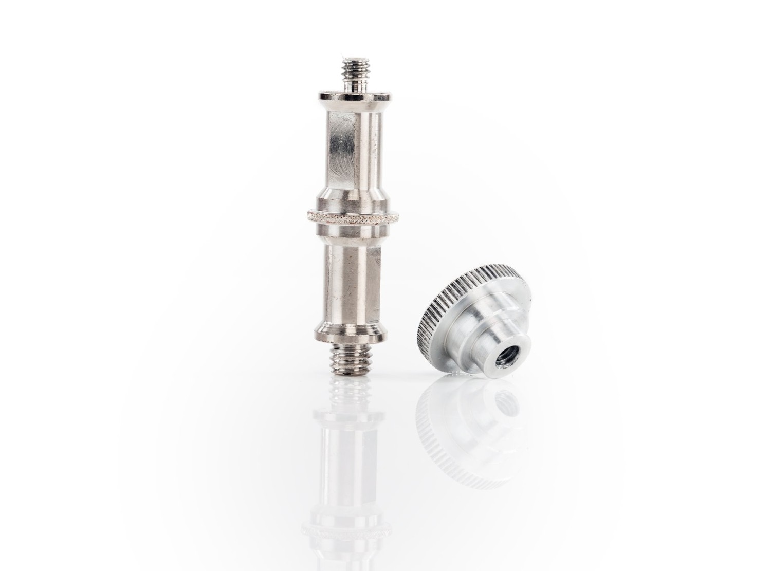 El Spigot está fabricado en una aleación metálica resistente y cuenta con un diámetro de montaje estándar de 5/8" (16 mm), además de conexiones roscadas de 1/4"-20 y 3/8"-16, lo que garantiza la compatibilidad con una amplia gama de equipos de iluminación y trípodes. El paquete incluye un botón de bloqueo estriado que garantiza una sujeción firme y segura y evita movimientos involuntarios durante el uso. Este adaptador compacto y fiable es ideal para fotógrafos de estudio y de exteriores que necesitan una conexión fiable entre los cabezales de flash y los modificadores de luz tipo softbox.