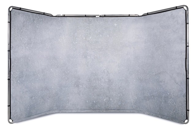 El fondo panorámico Lastolite de 4 m Limestone es un sistema de fondo grande y autoportante con una superficie texturizada de tela, diseñado para usos fotográficos profesionales, como retratos de grupo, eventos y sesiones de estudio.